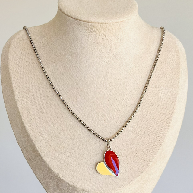 Ajoutez une touche d’élégance à votre style avec ce collier délicat en acier inoxydable. Sa chaîne fine de 51,5 cm met en valeur un pendentif cœur unique, divisé en deux moitiés : rouge vibrant d’un côté et argenté brillant de l’autre. Parfait pour symboliser l’amour, l’amitié ou simplement apporter une note romantique à vos tenues. Résistant, léger et facile à porter au quotidien.