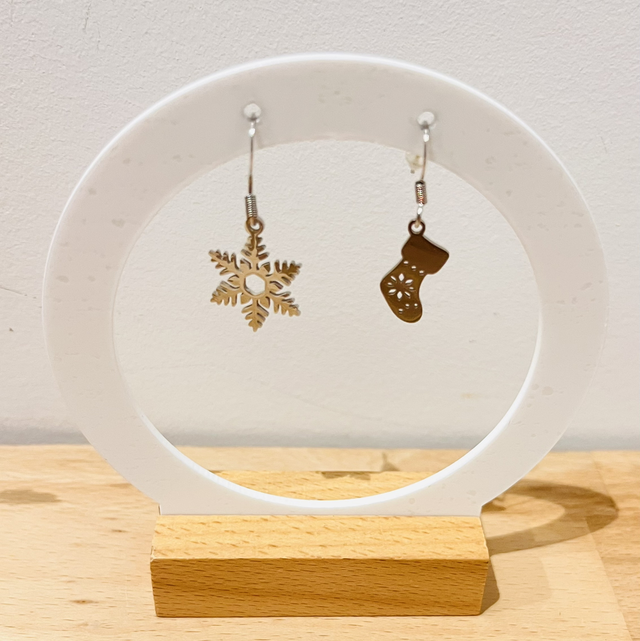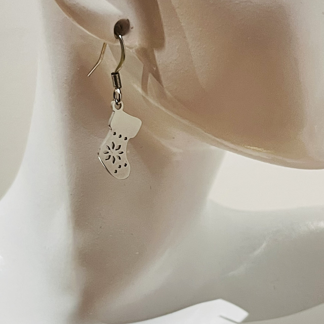 Craquez pour ces adorables boucles d’oreilles de NoĂ«l, dĂ©pareillĂ©es et pleines de charme, composĂ©es d’une petite botte de NoĂ«l et d’un flocon de neige dĂ©licatement ajourĂ©.