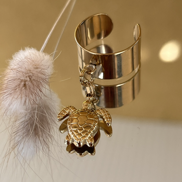 Une bague réglable en acier inoxydable doré, élégante et raffinée, sublimée par un pendentif tortue finement détaillé.